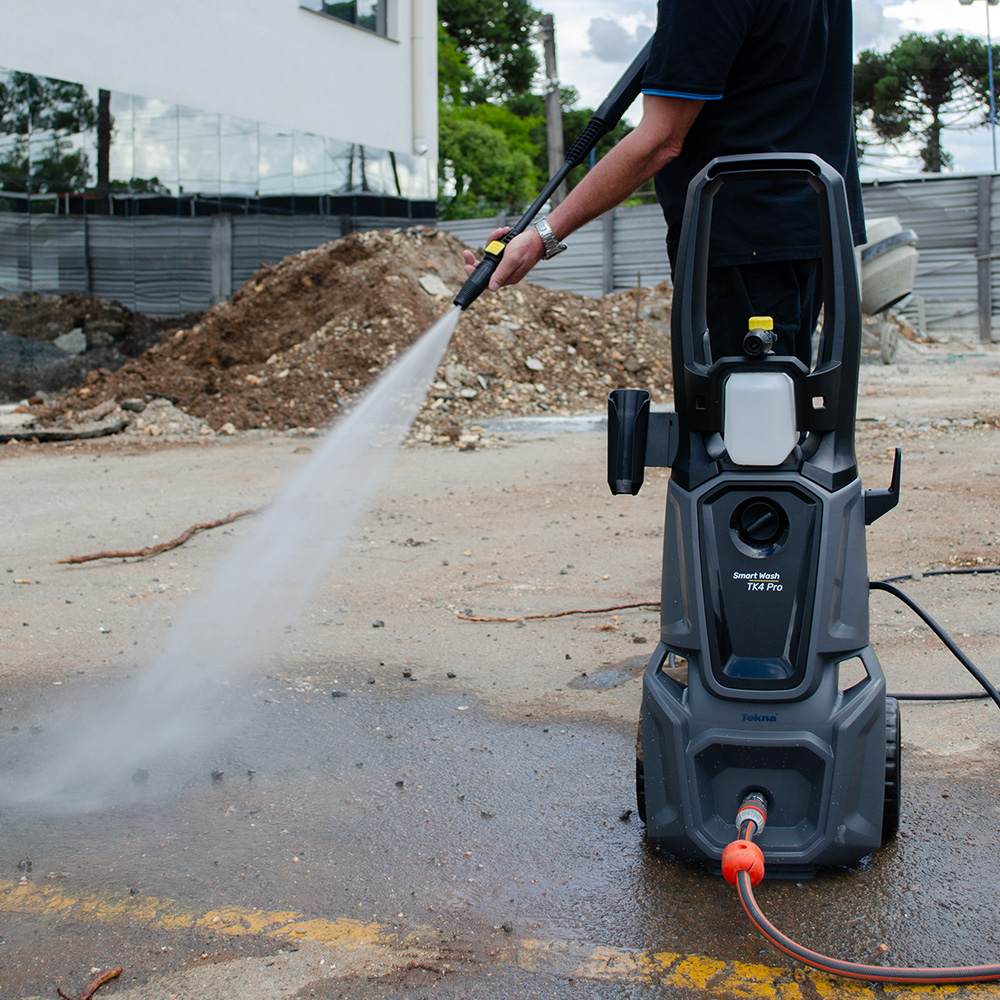 Smart Wash TK4 Pro conta com corpo robusto, projetado para suportar longas horas de trabalho. É indicada para lavar carros, motos, calçadas, paredes e equipamentos com eficiência profissional. Seu kit de acessórios inclui pistola, mangueira de 6 metros, pistola e lança com bico regulável.
